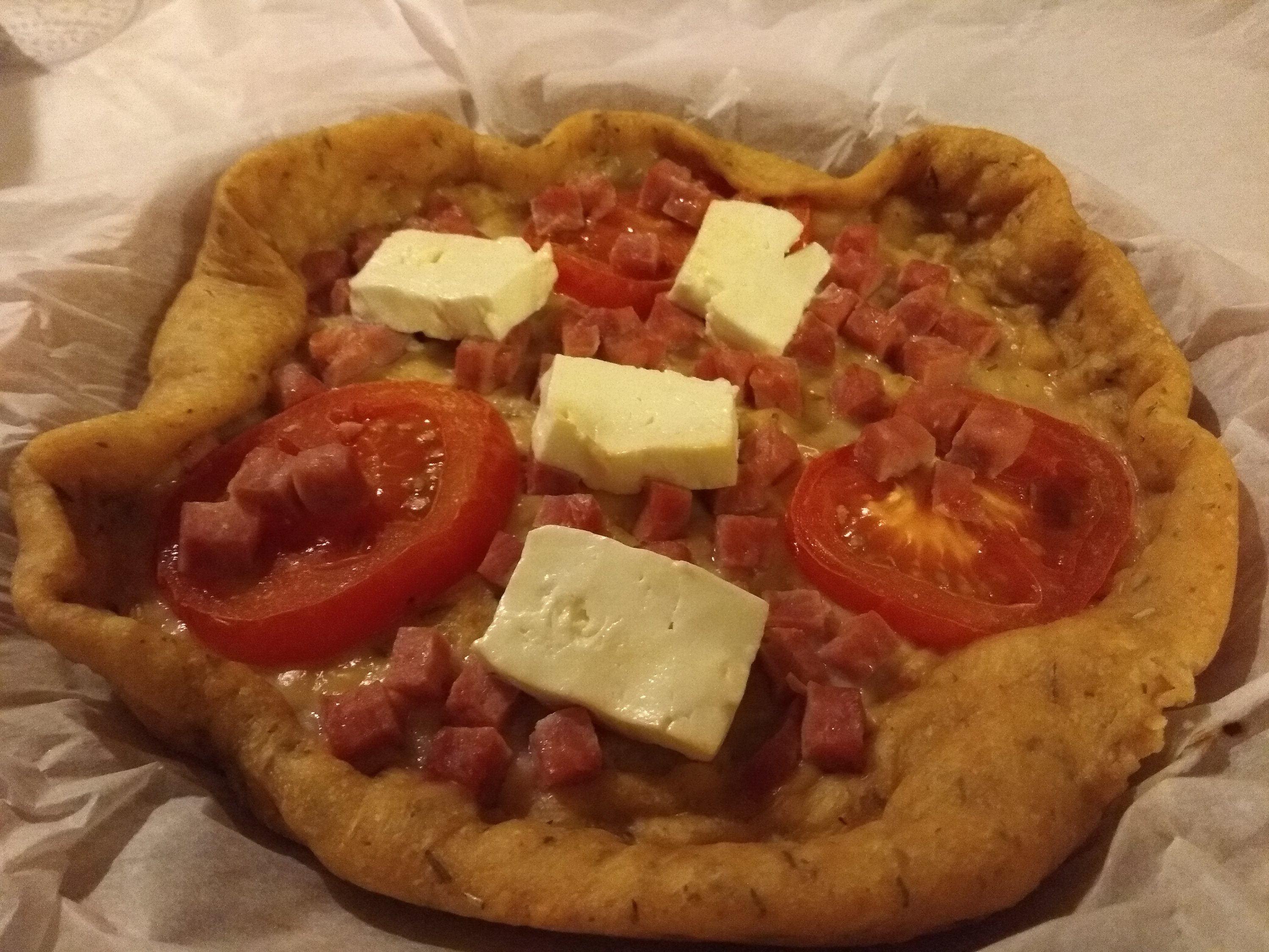 #Ham-Goat cheese-Tomato pizza